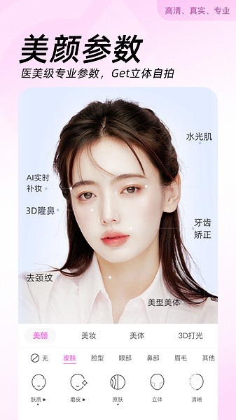 想要美照精致自然不失真 ?明眸大眼、修饰肤色、磨皮美白、祛斑祛痘、淡化黑眼圈、高挺鼻梁、五官立体、牙齿美白、柔顺发丝、素颜上妆、美腿瘦身、拉长腿部线条、缩小鼻翼、高级柔焦,一切只为精致的你,美的自然才高级!